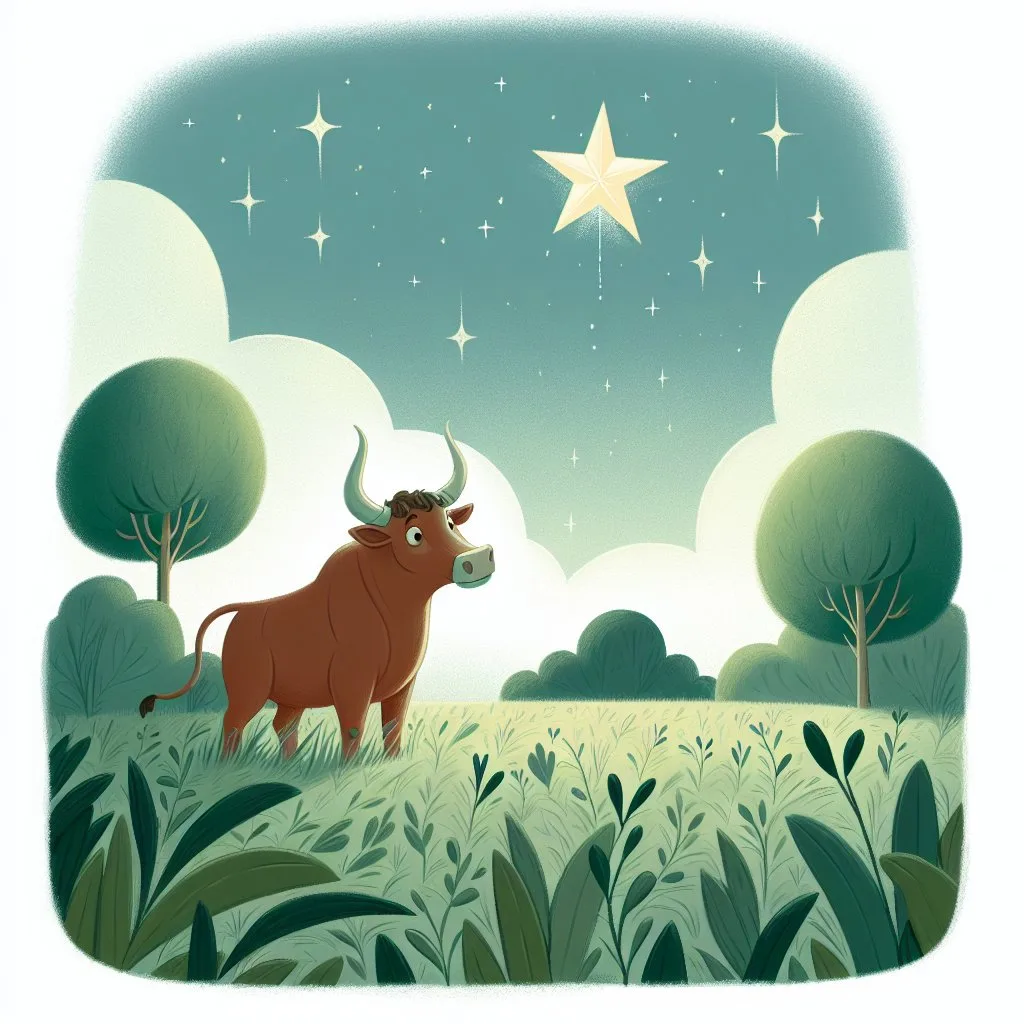 —Hola, querido toro. Me llamo Estrellita. He caído del cielo y ahora estoy aquí para ayudarte.